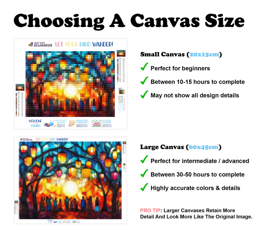 Escape into a world of vibrant colors and creative tranquility with the ‘Autumn Festival Lights’ Diamond Painting Kit. This exclusive full-drill design by artist Caleb Smith is available only at Paint With Diamonds. Let your mind unwind as you piece together shimmering diamonds to create a beautiful masterpiece.