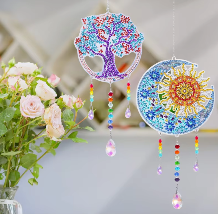 Create a masterpiece that dazzles in the sunlight and sings in the breeze with our DIY Diamond Painting Wind Chimes! These unique, double-sided acrylic pieces combine the joy of diamond painting with the tranquil sound of wind chimes, making them the perfect addition to your home decor or outdoor space.