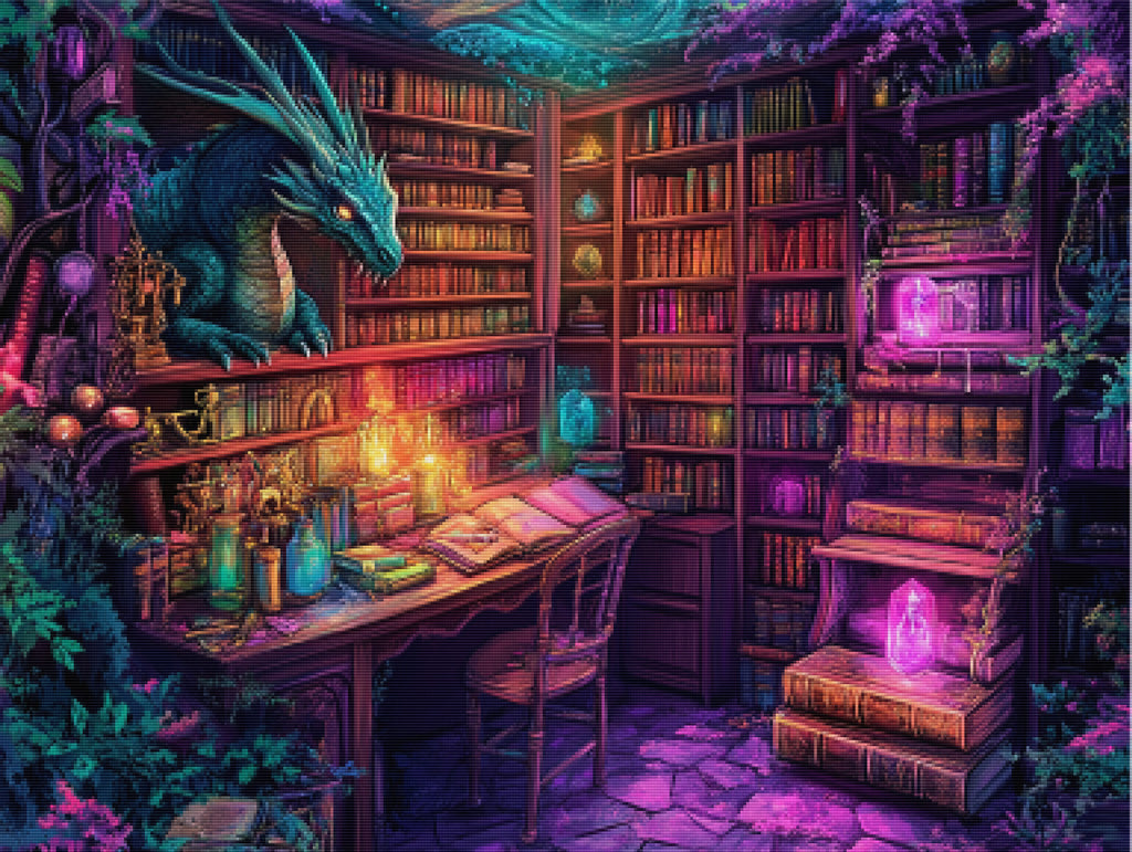 Escape into a world of vibrant colors and creative tranquility with the ‘Ancient Library Hidden In A Forest’ Diamond Painting Kit. This exclusive full-drill design by artist Caleb Smith is available only at Paint With Diamonds. Let your mind unwind as you piece together shimmering diamonds to create a beautiful masterpiece.