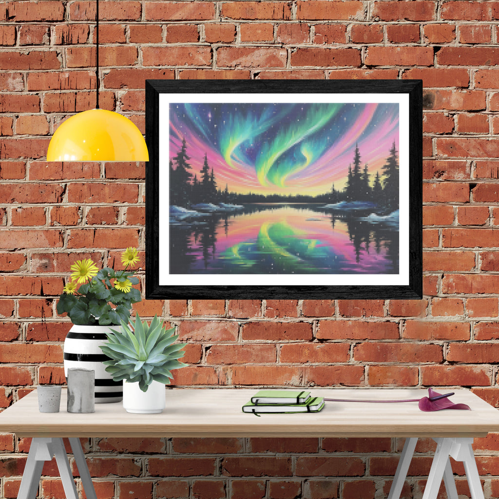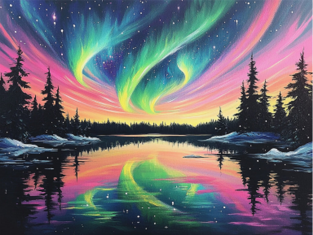 Escape into a world of vibrant colors and creative tranquility with the ‘Calm Lake Surrounded By Snow-Laden Trees’ Diamond Painting Kit. This exclusive full-drill design by artist Caleb Smith is available only at Paint With Diamonds. Let your mind unwind as you piece together shimmering diamonds to create a beautiful masterpiece.