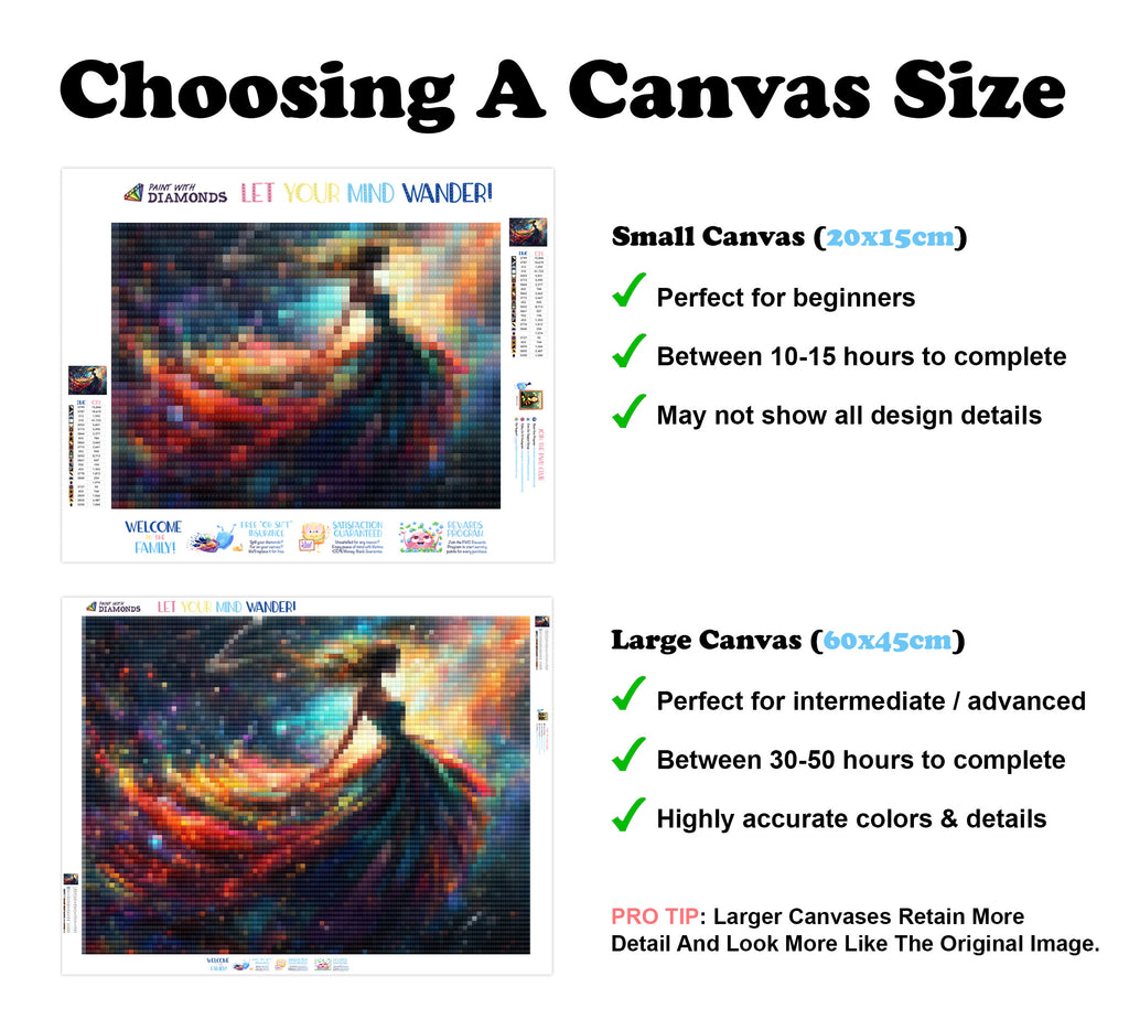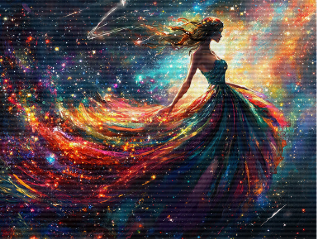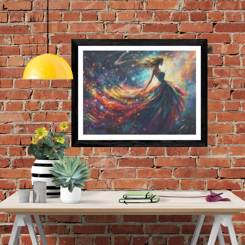 Escape into a world of vibrant colors and creative tranquility with the ‘Celestial Galactic Goddess’ Diamond Painting Kit. This exclusive full-drill design by artist Caleb Smith is available only at Paint With Diamonds. Let your mind unwind as you piece together shimmering diamonds to create a beautiful masterpiece.