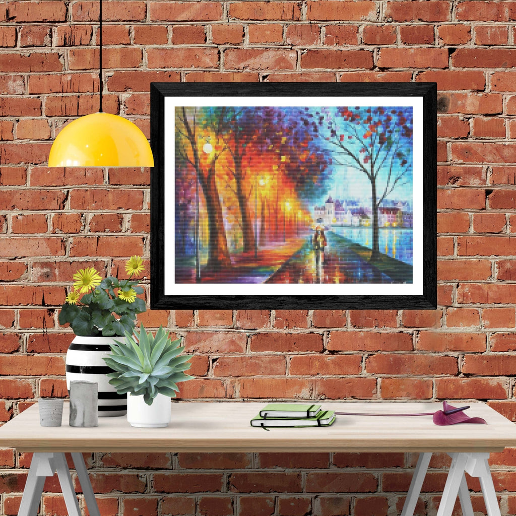 Relax, unwind, and create Diamond Art! "City By The Lake" by artist Leonid Afremov is now available exclusively at Paint With Diamonds® as a full-drill Diamond Painting Kit in your choice of Round or Square diamonds.