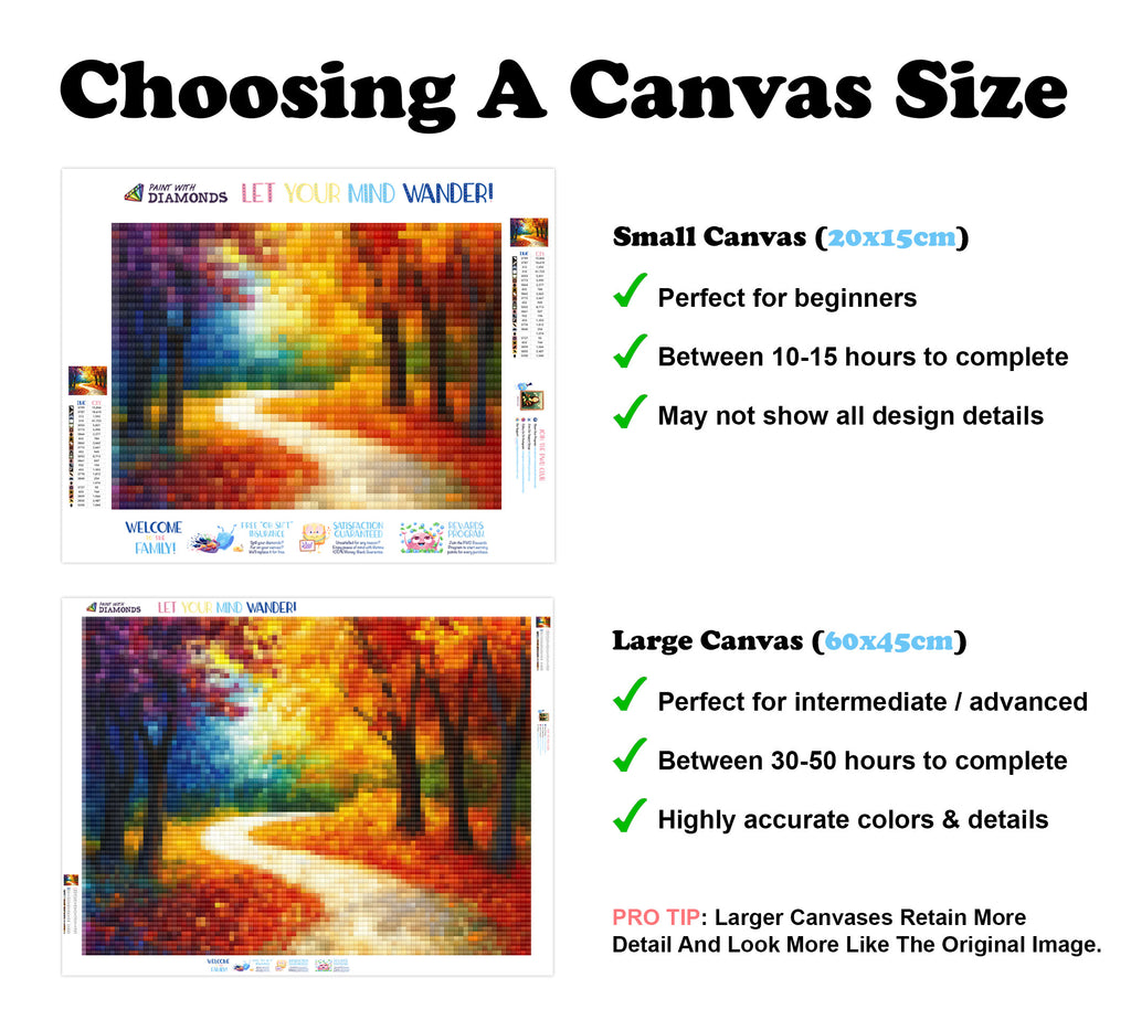 Escape into a world of vibrant colors and creative tranquility with the ‘Colorful Autumn Pathway’ Diamond Painting Kit. This exclusive full-drill design by artist Luca Ardent is available only at Paint With Diamonds. Let your mind unwind as you piece together shimmering diamonds to create a beautiful masterpiece.