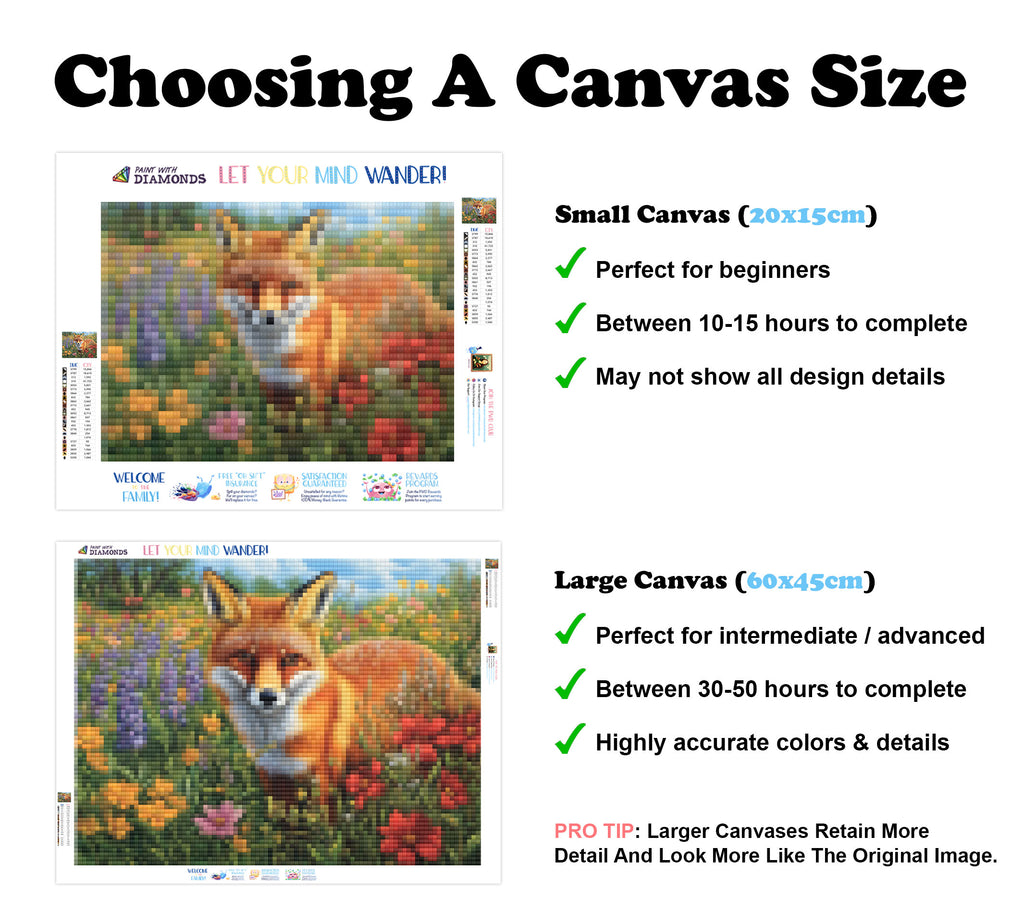 Premium Quality Diamond Painting Kit: Includes a velvety-soft adhesive canvas, eco-friendly shimmering resin diamonds, and a premium toolkit - everything you ned to get started on your next masterpiece.