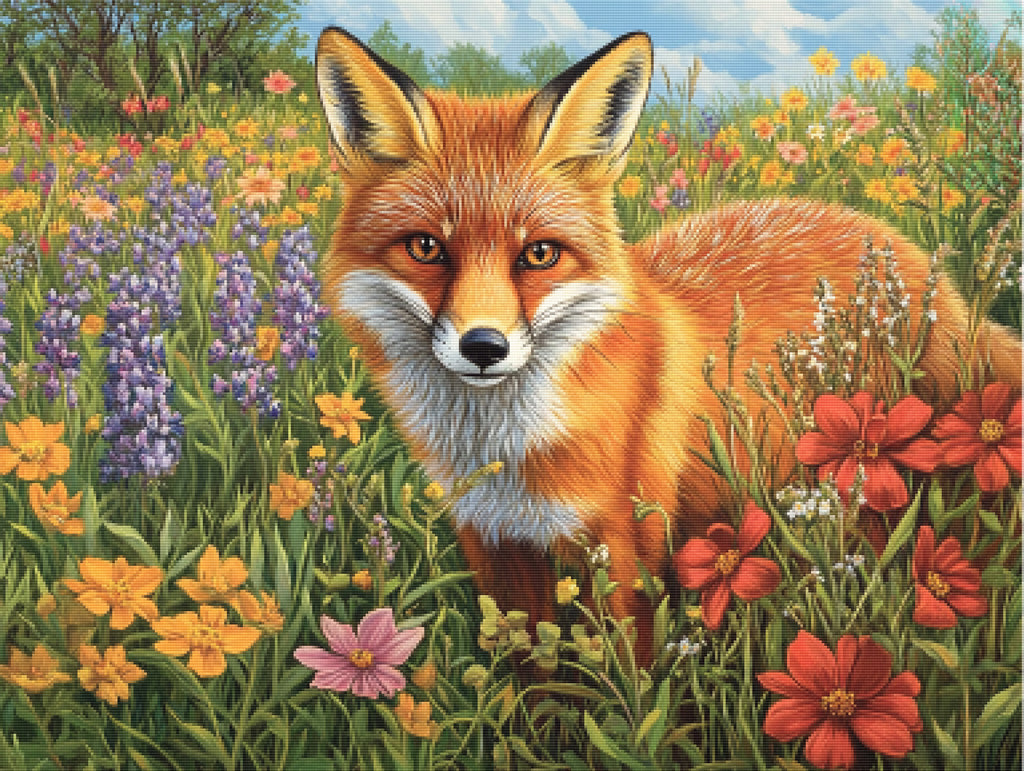 Curious Fox in a Flowering Field