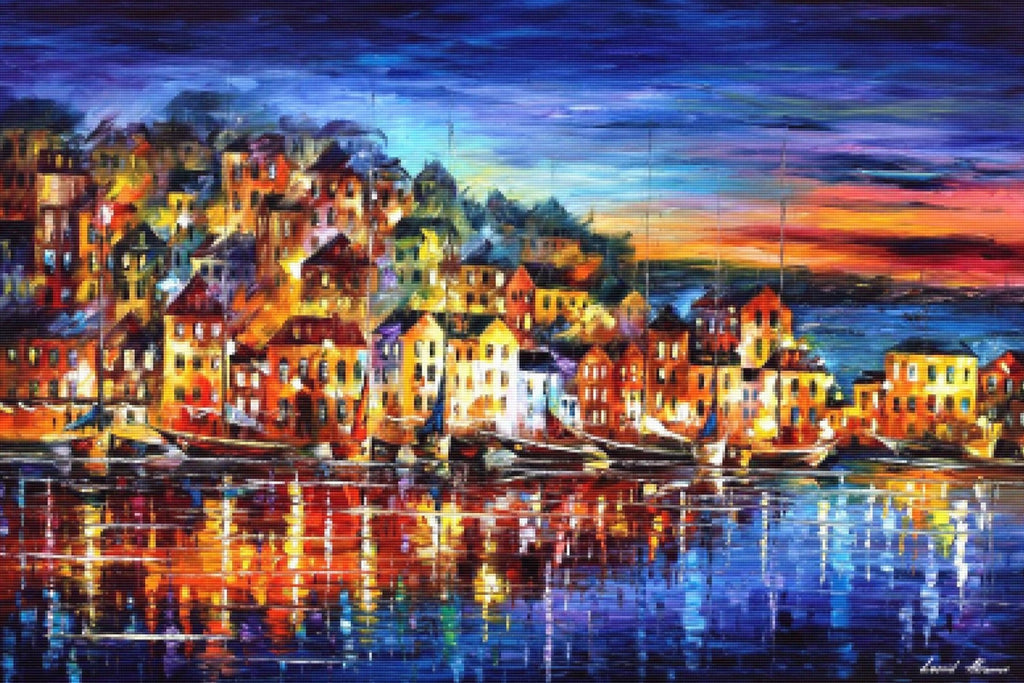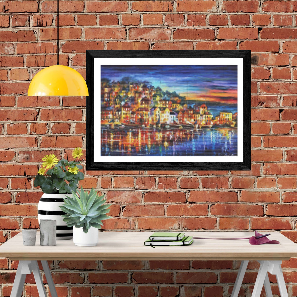 Relax, unwind, and create Diamond Art! "Quiet Town" by artist Leonid Afremov is now available exclusively at Paint With Diamonds® as a full-drill Diamond Painting Kit in your choice of Round or Square diamonds.