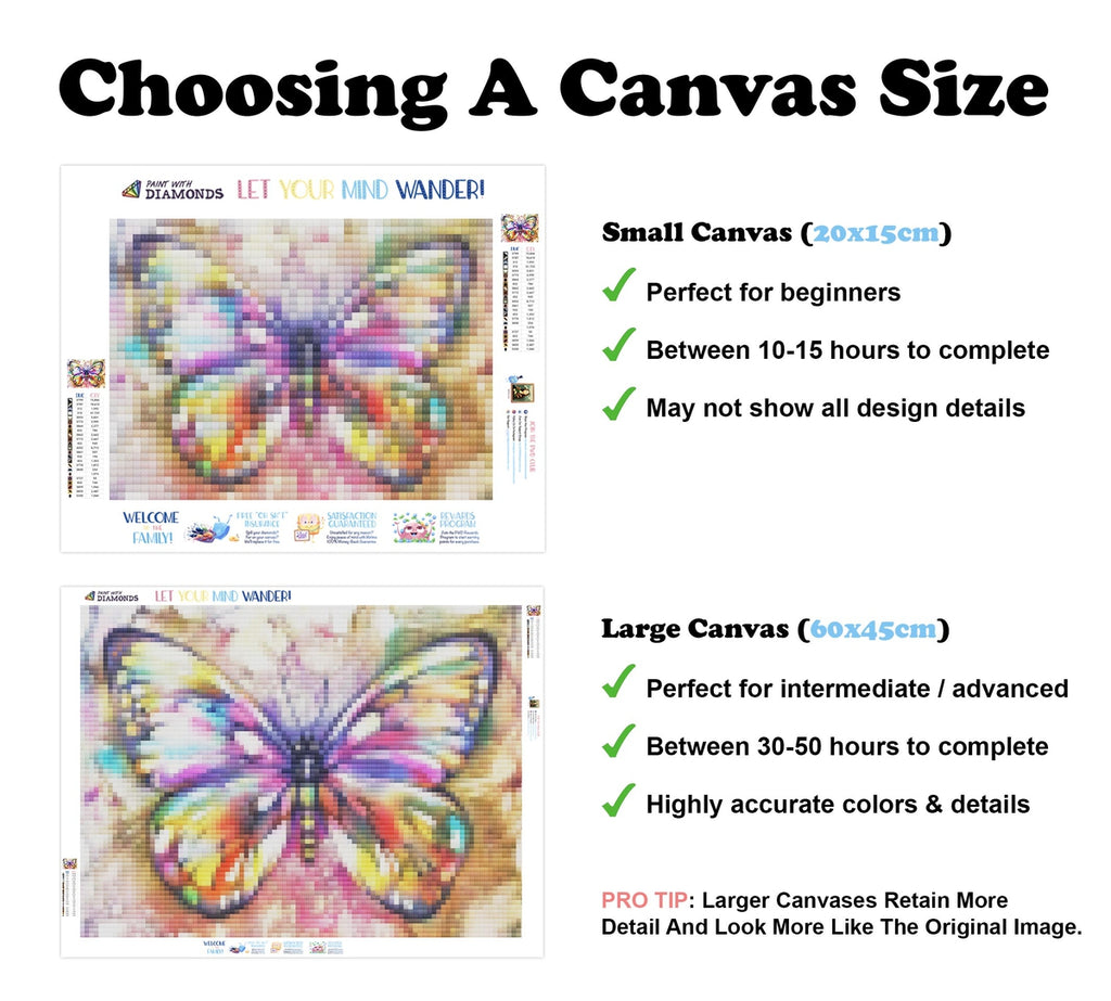FREE 'OH SH*T' INSURANCE: Sh*t happens. When it does, know that we've got your back! If the cat walks on your canvas, kid turns your diamonds into confetti, whatever happens - we'll replace your canvas or diamonds for FREE.