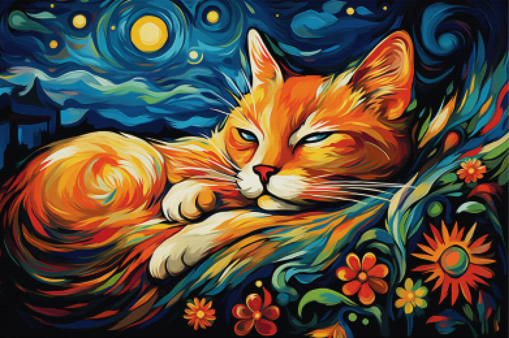 Escape into a world of vibrant colors and creative tranquility with the ‘Dreaming Cat’ Diamond Painting Kit. This exclusive full-drill design by artist Caleb Smith is available only at Paint With Diamonds. Let your mind unwind as you piece together shimmering diamonds to create a beautiful masterpiece.