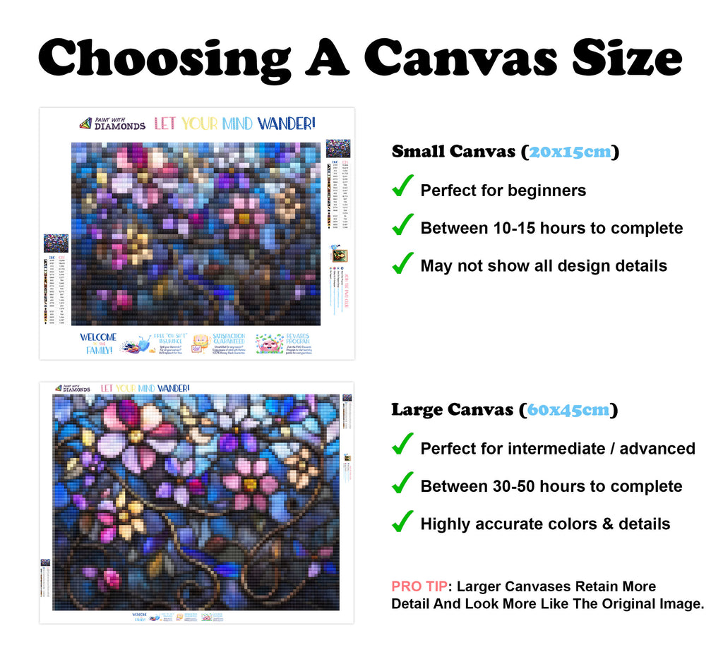 Escape into a world of vibrant colors and creative tranquility with the ‘Fantasy Floral Stained Glass’ Diamond Painting Kit. This exclusive full-drill design by artist Caleb Smith is available only at Paint With Diamonds. Let your mind unwind as you piece together shimmering diamonds to create a beautiful masterpiece.