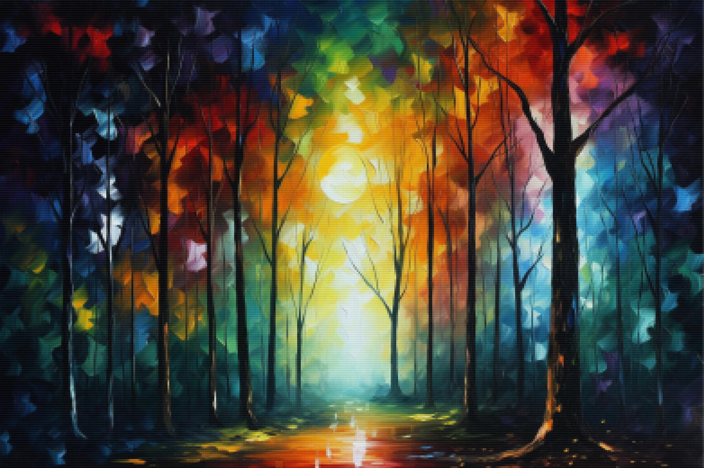 Escape into a world of vibrant colors and creative tranquility with the ‘Flicker Through The Trees’ Diamond Painting Kit. This exclusive full-drill design by artist Caleb Smith is available only at Paint With Diamonds. Let your mind unwind as you piece together shimmering diamonds to create a beautiful masterpiece.