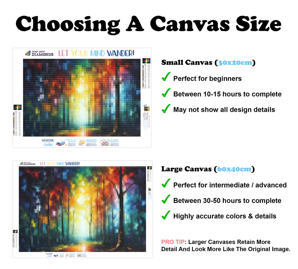 Premium Quality Diamond Painting Kit: Includes a velvety-soft adhesive canvas, eco-friendly shimmering resin diamonds, and a premium toolkit - everything you ned to get started on your next masterpiece.