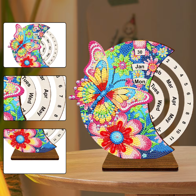 Flower Butterfly Diamond Painting Perpetual Calendar