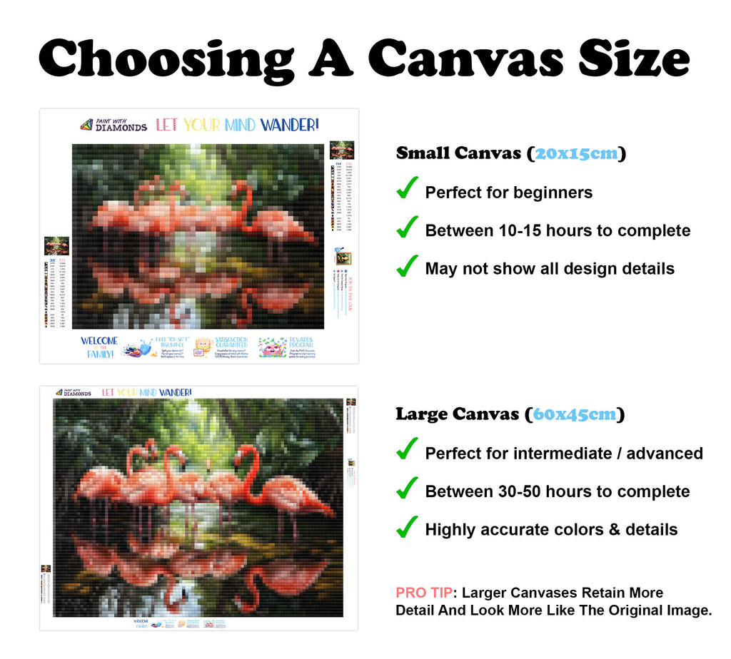 Large canvases show tiny details and all lettering, but may take up to 50+ hours to complete.