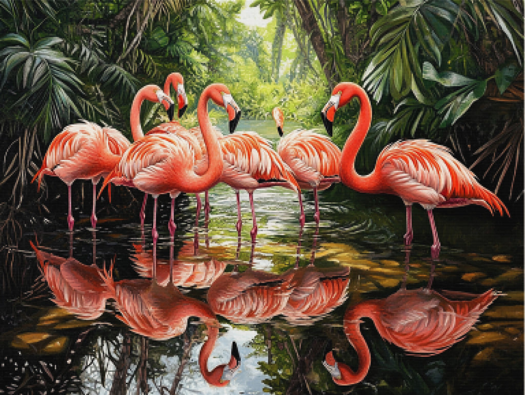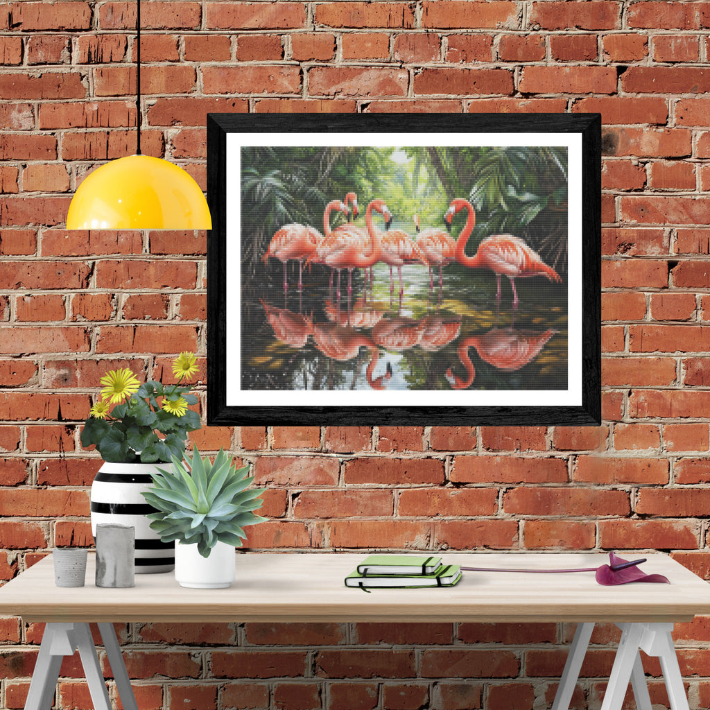 Elegant Flamingos in a Shallow Lagoon