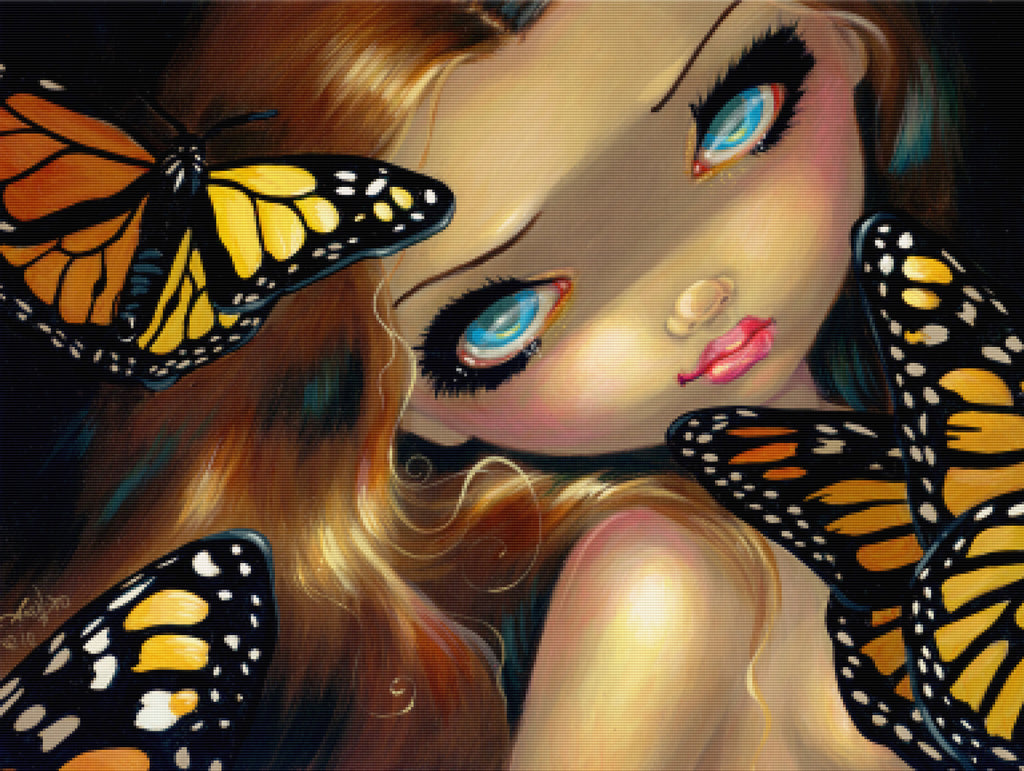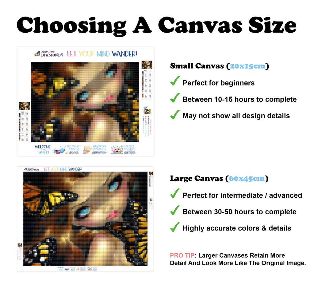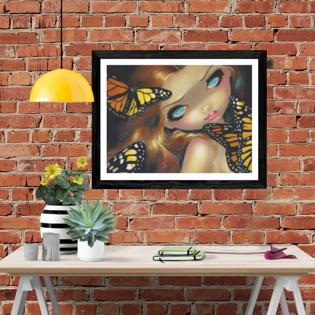 Escape into a world of vibrant colors and creative tranquility with the ‘Nymph With Monarchs’ Diamond Painting Kit. This exclusive full-drill design by artist Jasmine Becket-Griffith is available only at Paint With Diamonds. Let your mind unwind as you piece together shimmering diamonds to create a beautiful masterpiece.