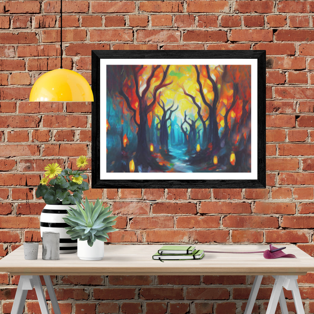 Escape into a world of vibrant colors and creative tranquility with the ‘Spooky Forest’ Diamond Painting Kit. This exclusive full-drill design by artist Caleb Smith is available only at Paint With Diamonds. Let your mind unwind as you piece together shimmering diamonds to create a beautiful masterpiece.