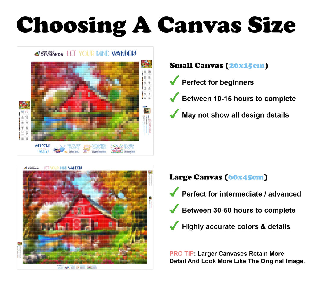 PREMIUM DIAMOND PAINTING KIT: Official Diamond Art kit includes 1x stay-flat adhesive canvas, 1x set of shimmering eco-friendly resin diamonds, and 1x premium toolkit. Diamonds cover the whole canvas.