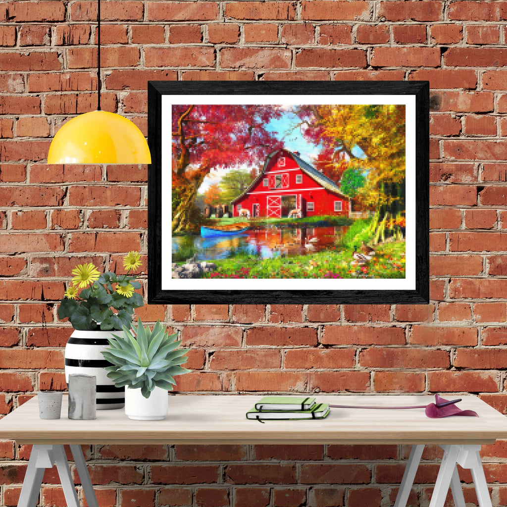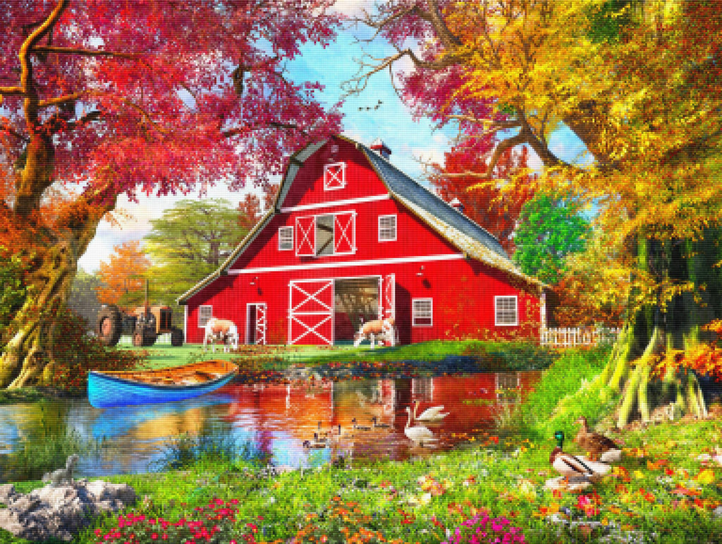 Relax, unwind, and create Diamond Art! "Sunny Autumn At the Barn" by artist Dominic Davison is now available exclusively at Paint With Diamonds® as a full-drill Diamond Painting Kit in your choice of Round or Square diamonds.
