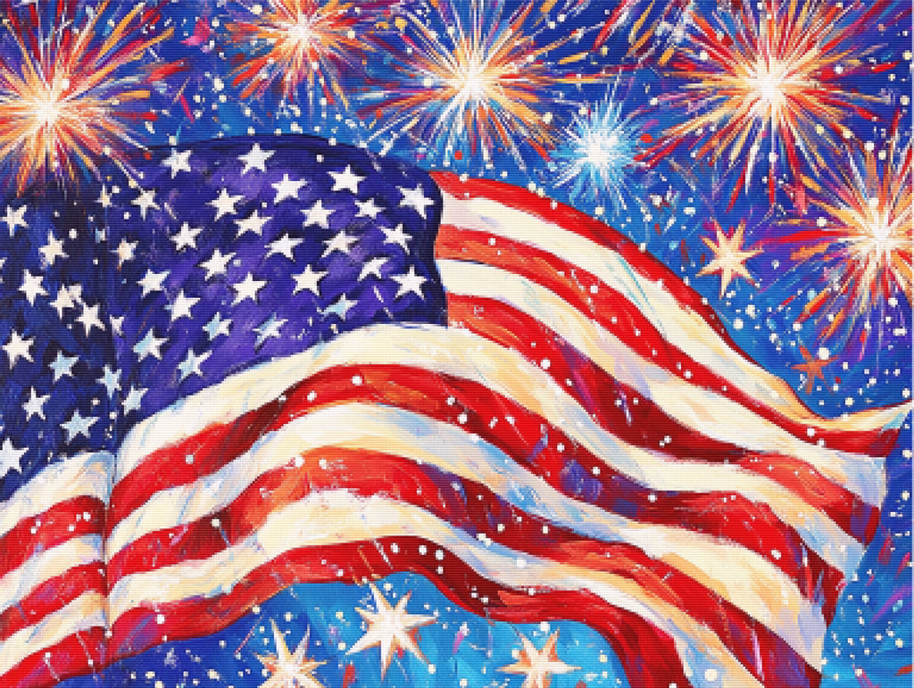 Escape into a world of vibrant colors and creative tranquility with the ‘Vibrant Stars and Stripes Forever’ Diamond Painting Kit. This exclusive full-drill design by artist Caleb Smith is available only at Paint With Diamonds. Let your mind unwind as you piece together shimmering diamonds to create a beautiful masterpiece.