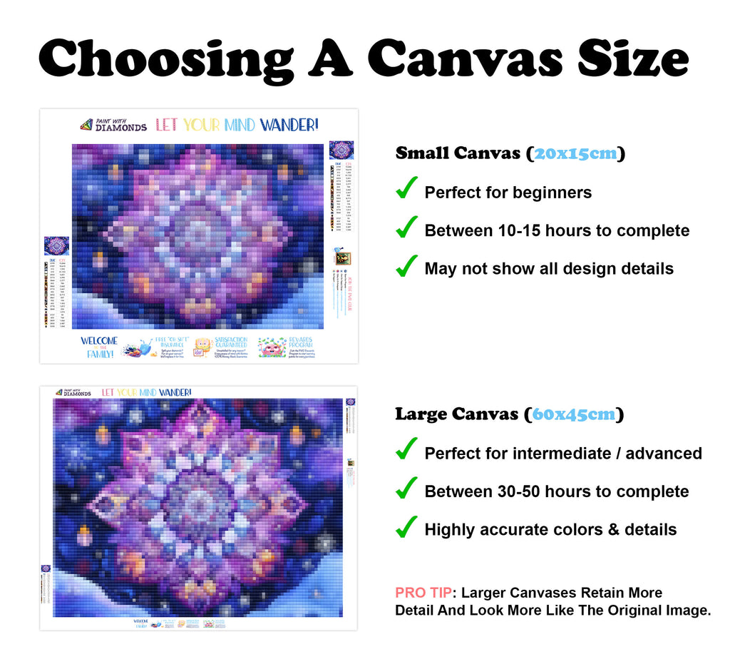 Premium Quality Diamond Painting Kit: Includes a velvety-soft adhesive canvas, eco-friendly shimmering resin diamonds, and a premium toolkit - everything you ned to get started on your next masterpiece.