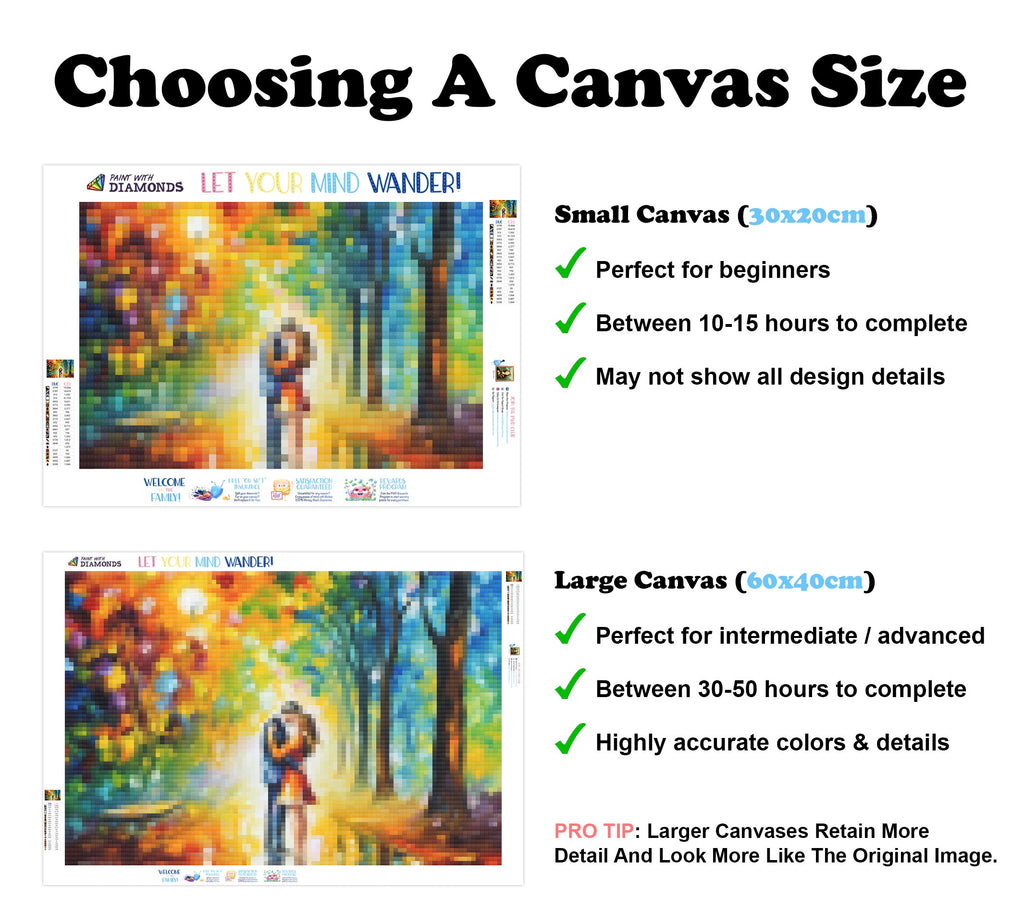 Large canvases show tiny details and all lettering, but may take up to 50+ hours to complete.