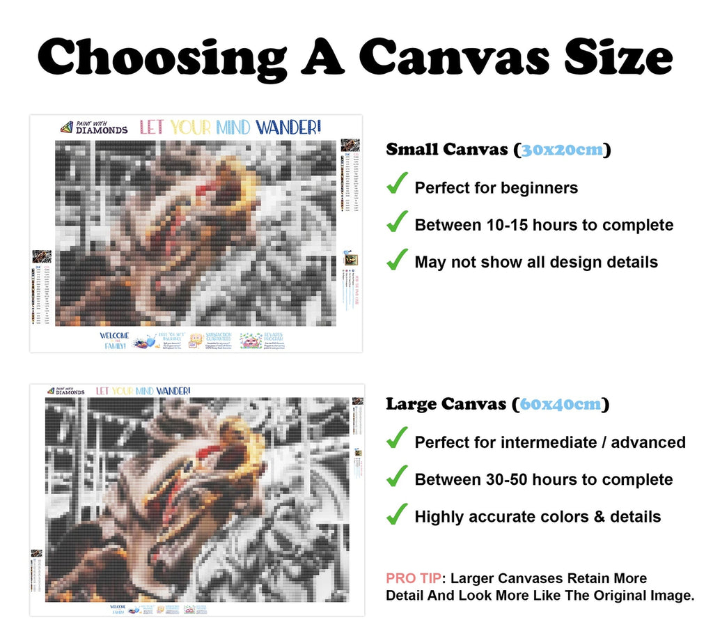 HAND-CODED CANVAS DESIGN: Our design team manually translates each artwork to Diamond Painting canvas. We adapt the original artwork by hand - thousands and thousands of pixels - to carefully chosen DMC color-coded diamonds.