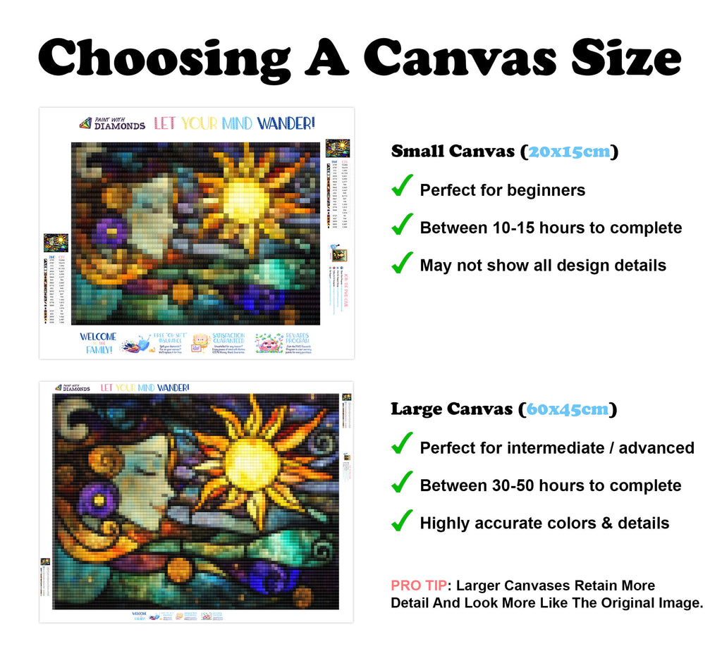 Premium Quality Diamond Painting Kit: Includes a velvety-soft adhesive canvas, eco-friendly shimmering resin diamonds, and a premium toolkit - everything you ned to get started on your next masterpiece.