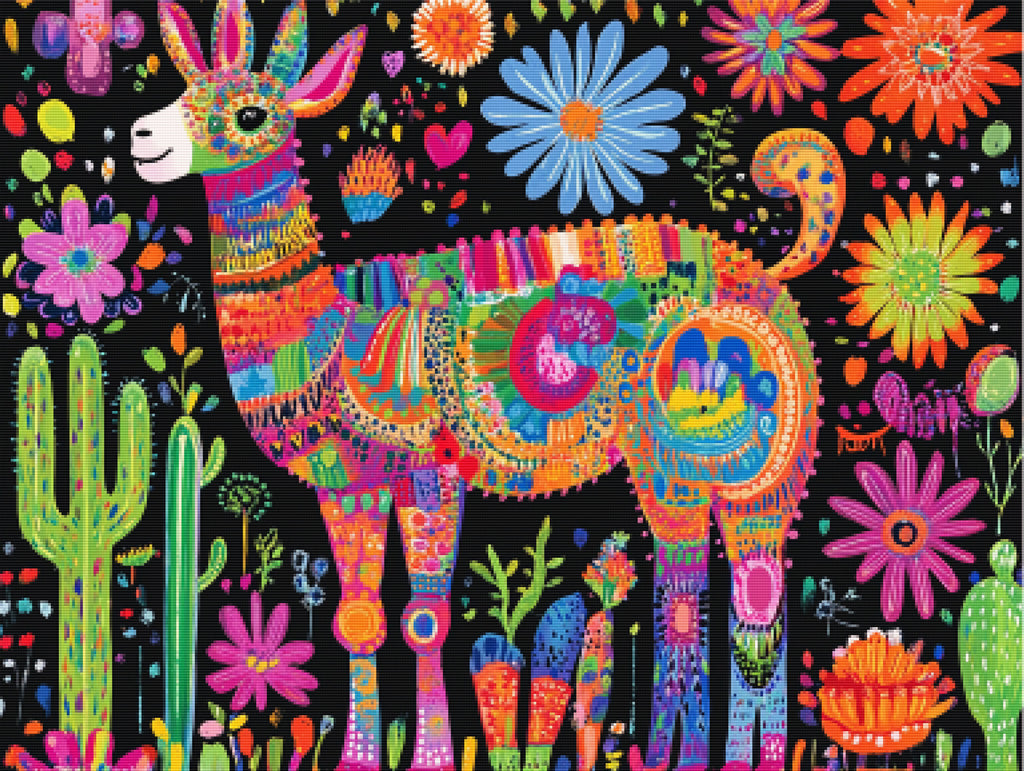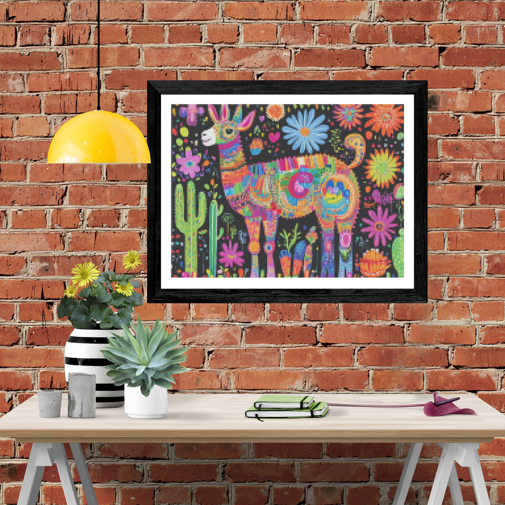 Escape into a world of vibrant colors and creative tranquility with the ‘Colorful Mexican Folk Art Llama’ Diamond Painting Kit. This exclusive full-drill design by artist Caleb Smith is available only at Paint With Diamonds. Let your mind unwind as you piece together shimmering diamonds to create a beautiful masterpiece.