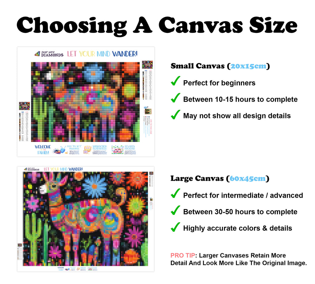Premium Quality Diamond Painting Kit: Includes a velvety-soft adhesive canvas, eco-friendly shimmering resin diamonds, and a premium toolkit - everything you ned to get started on your next masterpiece.