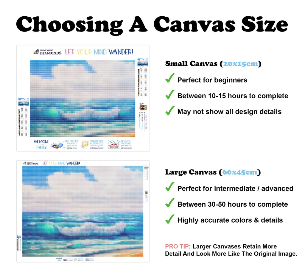 PREMIUM DIAMOND PAINTING KIT: Official Diamond Art kit includes 1x stay-flat adhesive canvas, 1x set of shimmering eco-friendly resin diamonds, and 1x premium toolkit. Diamonds cover the whole canvas.