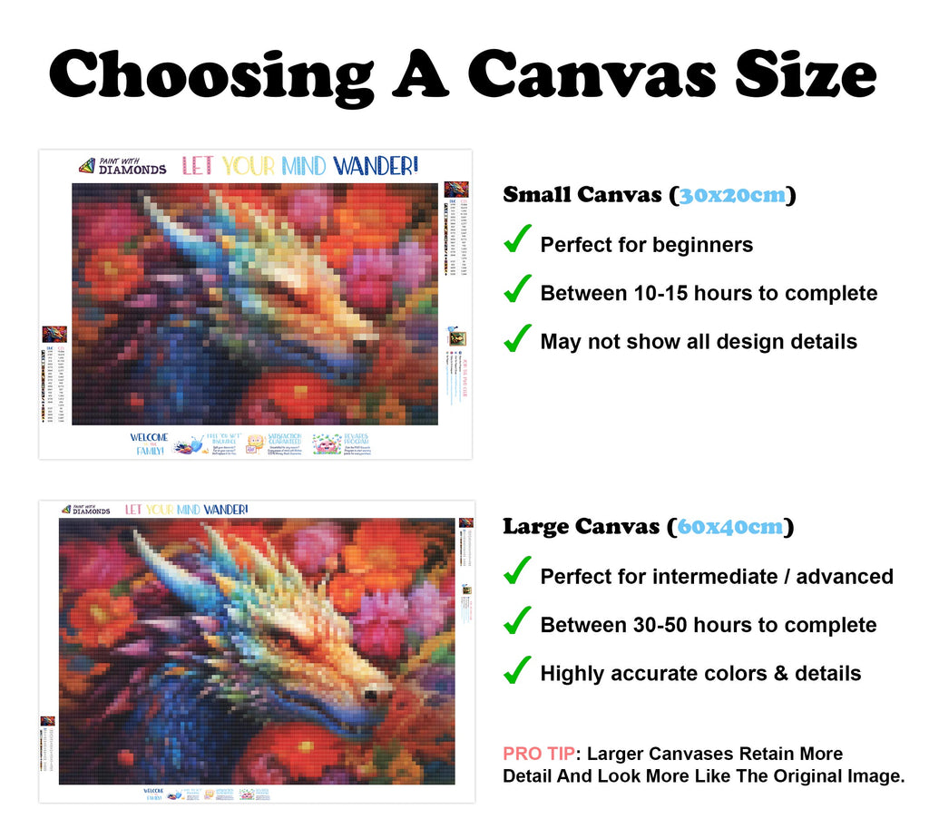 Escape into a world of vibrant colors and creative tranquility with the ‘Dragon's Mirage’ Diamond Painting Kit. This exclusive full-drill design by artist Caleb Smith is available only at Paint With Diamonds. Let your mind unwind as you piece together shimmering diamonds to create a beautiful masterpiece.