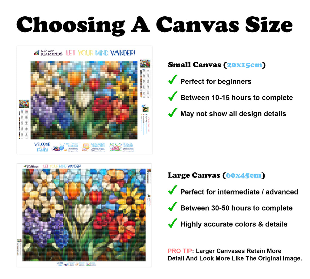 Escape into a world of vibrant colors and creative tranquility with the ‘Garden With Spring Tulips, Daffodils, and Lilacs’ Diamond Painting Kit. This exclusive full-drill design by artist Caleb Smith is available only at Paint With Diamonds. Let your mind unwind as you piece together shimmering diamonds to create a beautiful masterpiece.