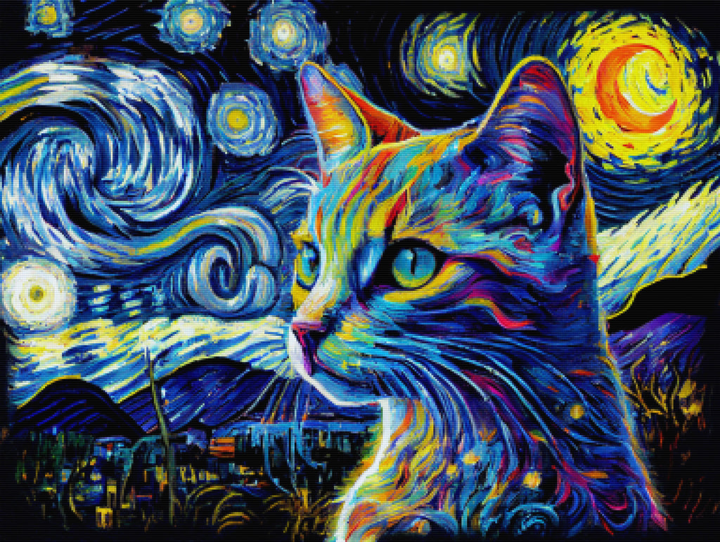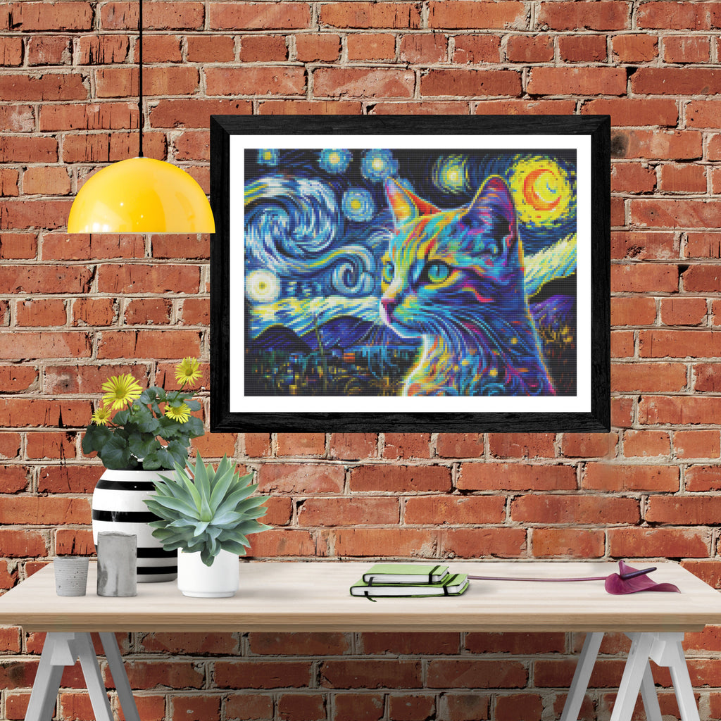 Escape into a world of vibrant colors and creative tranquility with the ‘Kitty Night’ Diamond Painting Kit. This exclusive full-drill design by artist Caleb Smith is available only at Paint With Diamonds. Let your mind unwind as you piece together shimmering diamonds to create a beautiful masterpiece.