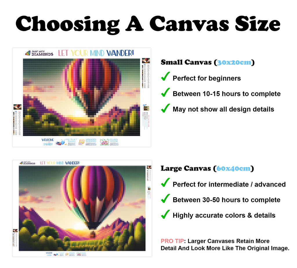 Large canvases show tiny details and all lettering, but may take up to 50+ hours to complete.