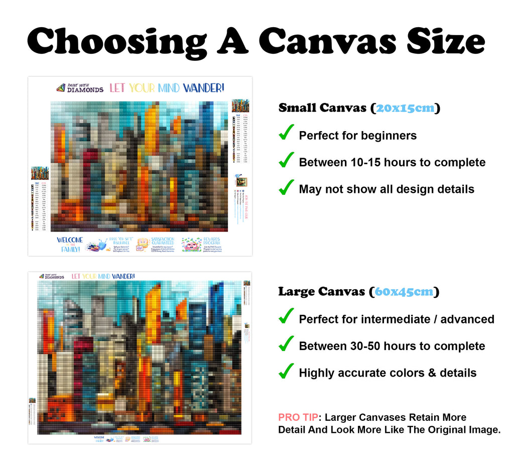 Premium Quality Diamond Painting Kit: Includes a velvety-soft adhesive canvas, eco-friendly shimmering resin diamonds, and a premium toolkit - everything you ned to get started on your next masterpiece.