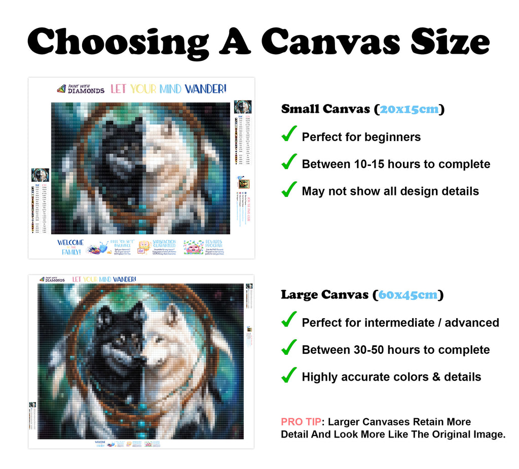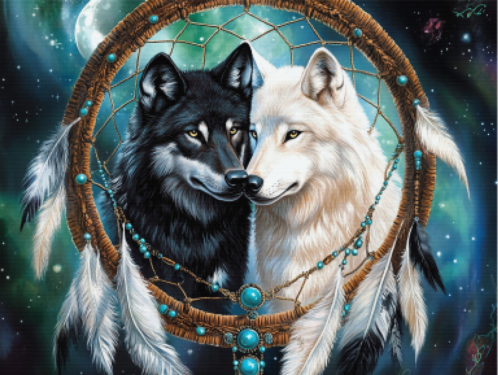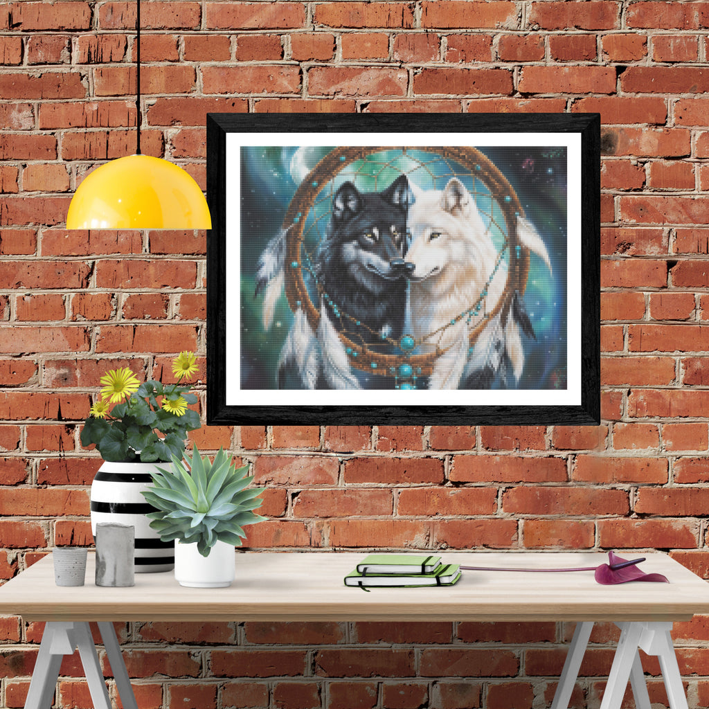 Escape into a world of vibrant colors and creative tranquility with the ‘Mystic Guardians Twin Wolves’ Diamond Painting Kit. This exclusive full-drill design by artist Caleb Smith is available only at Paint With Diamonds. Let your mind unwind as you piece together shimmering diamonds to create a beautiful masterpiece.