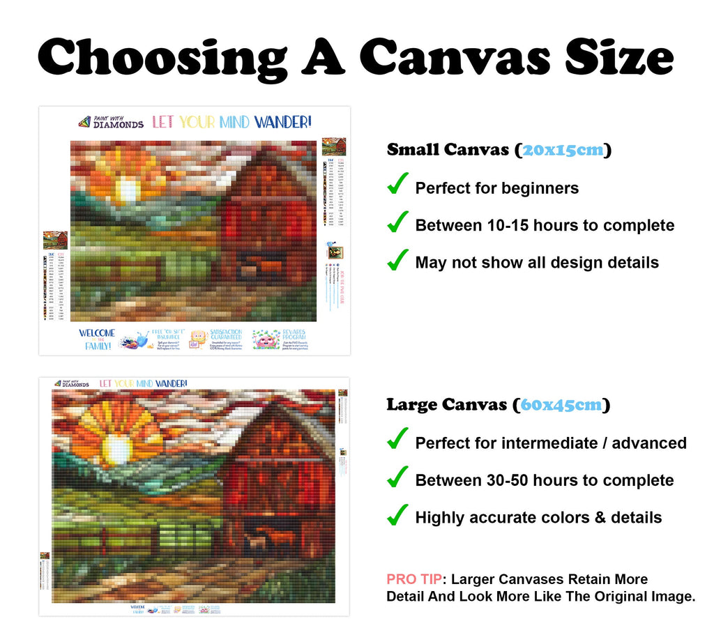 Escape into a world of vibrant colors and creative tranquility with the ‘Rural Barn Scene’ Diamond Painting Kit. This exclusive full-drill design by artist Caleb Smith is available only at Paint With Diamonds. Let your mind unwind as you piece together shimmering diamonds to create a beautiful masterpiece.