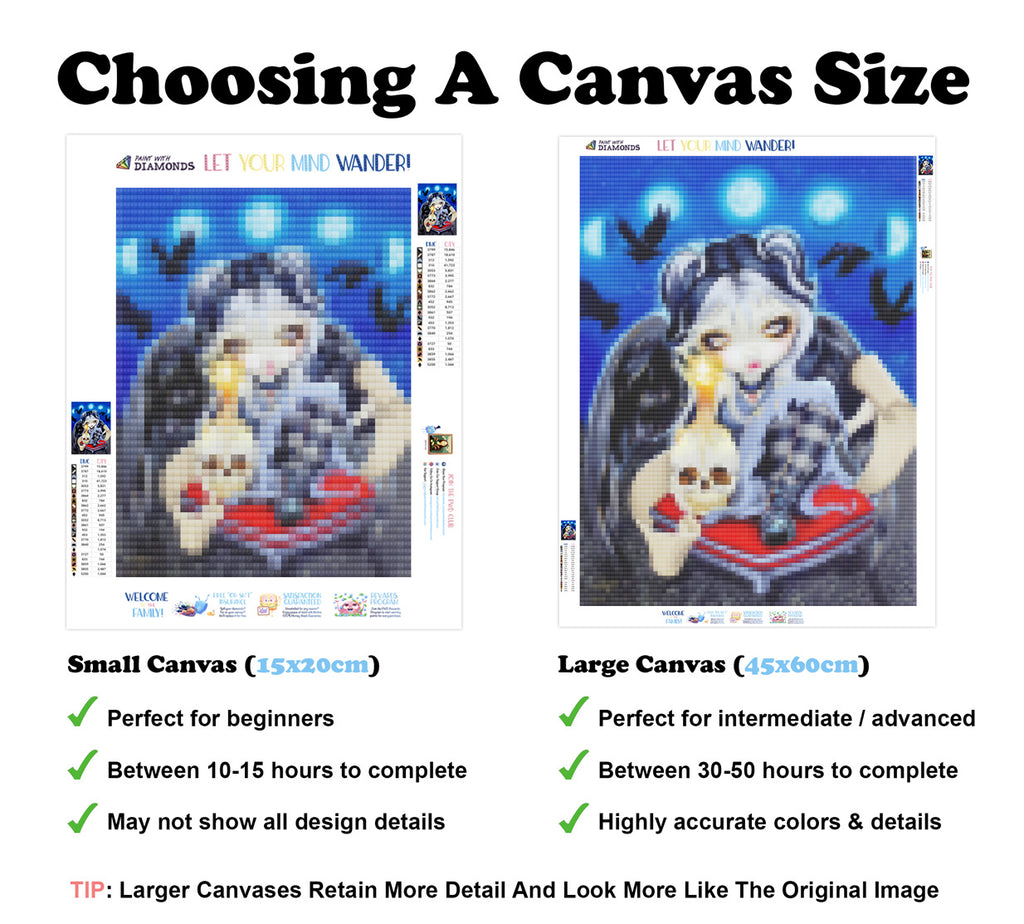Dog walk on your canvas? Kids turn your diamonds into confetti? We'll replace your kit for free. Never cry over spilled diamonds.