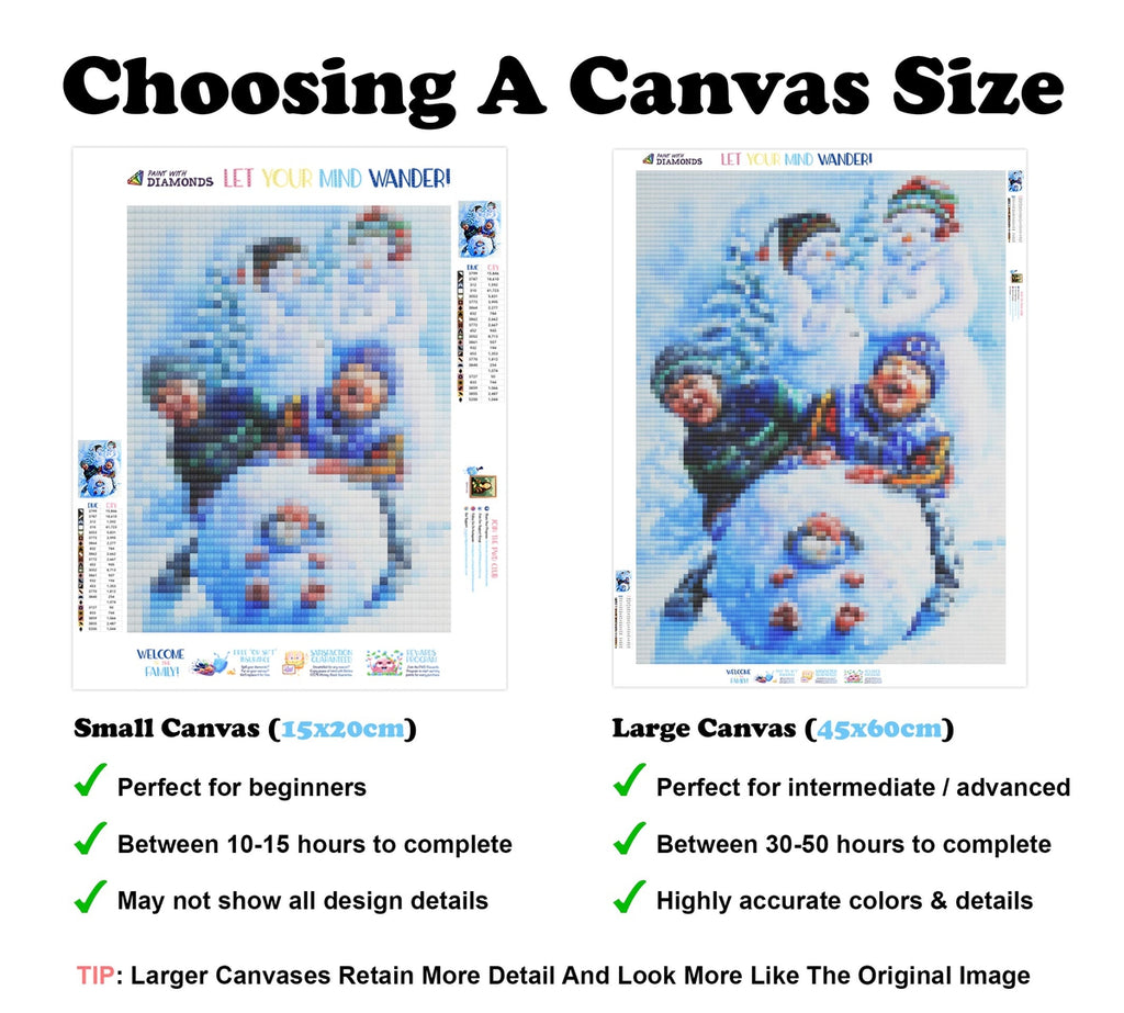 Dog walk on your canvas? Kids turn your diamonds into confetti? We'll replace your kit for free. Never cry over spilled diamonds.
