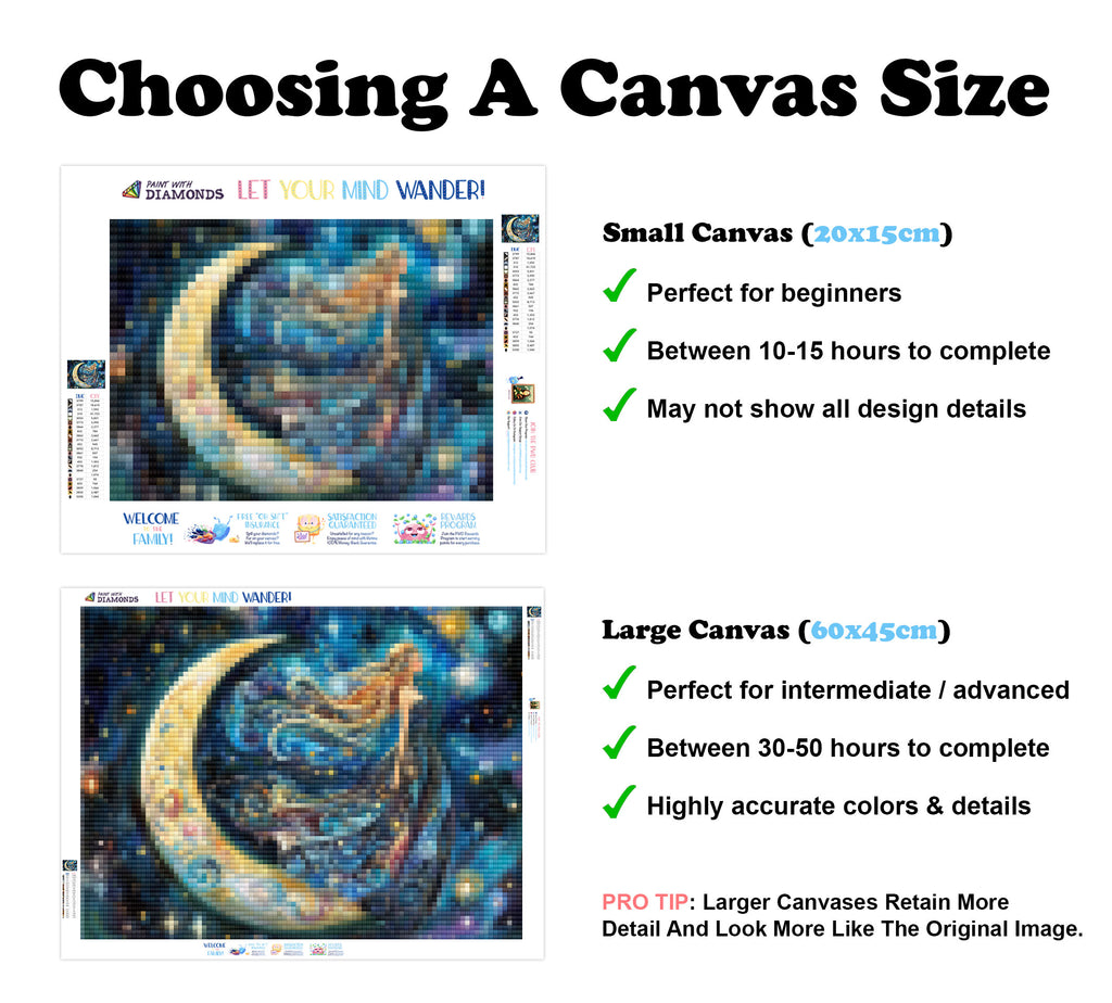 Large canvases show tiny details and all lettering, but may take up to 50+ hours to complete.