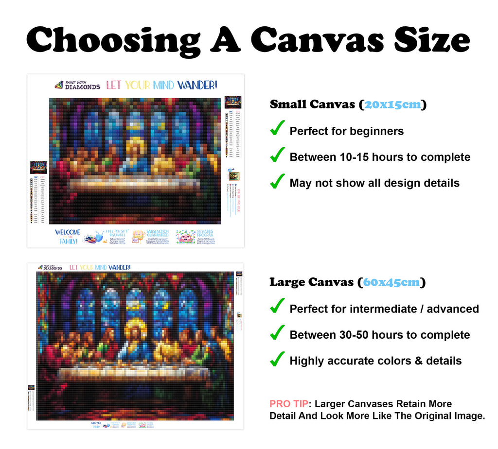 Escape into a world of vibrant colors and creative tranquility with the ‘The Last Supper Illumined’ Diamond Painting Kit. This exclusive full-drill design by artist Caleb Smith is available only at Paint With Diamonds. Let your mind unwind as you piece together shimmering diamonds to create a beautiful masterpiece.