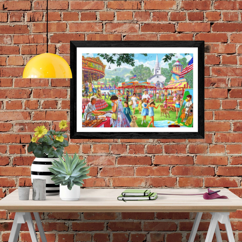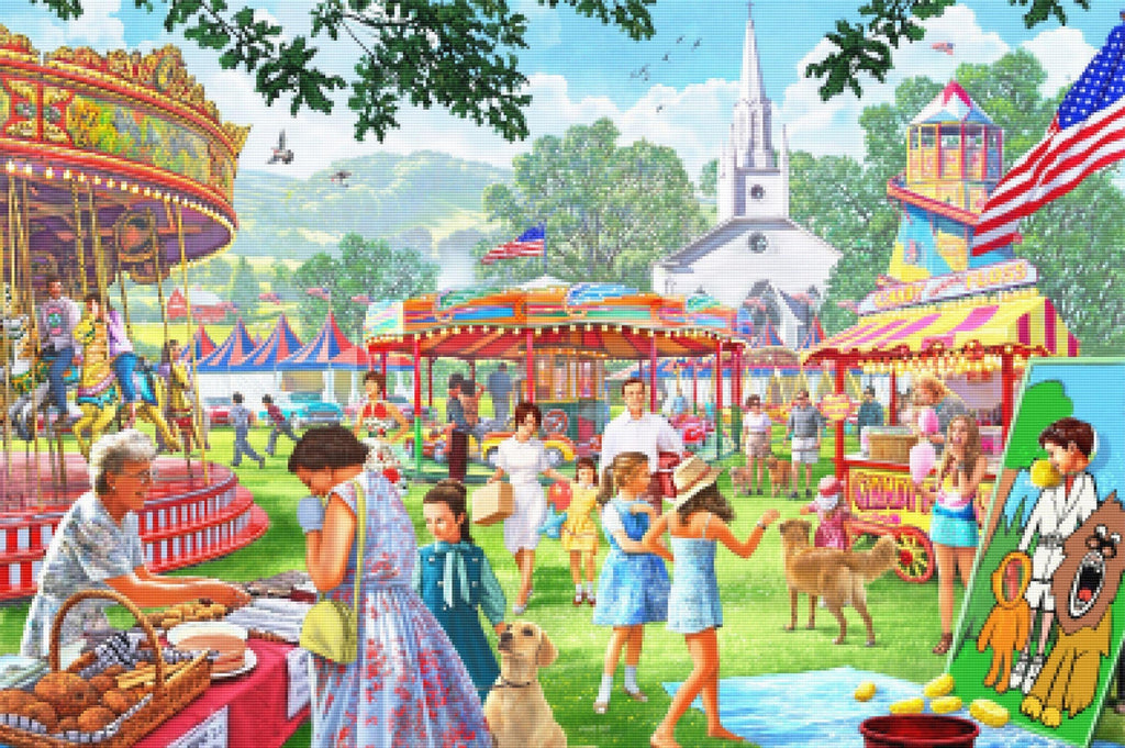 Relax, unwind, and create Diamond Art! "Village Fete" by artist Steve Crisp is now available exclusively at Paint With Diamonds® as a full-drill Diamond Painting Kit in your choice of Round or Square diamonds.