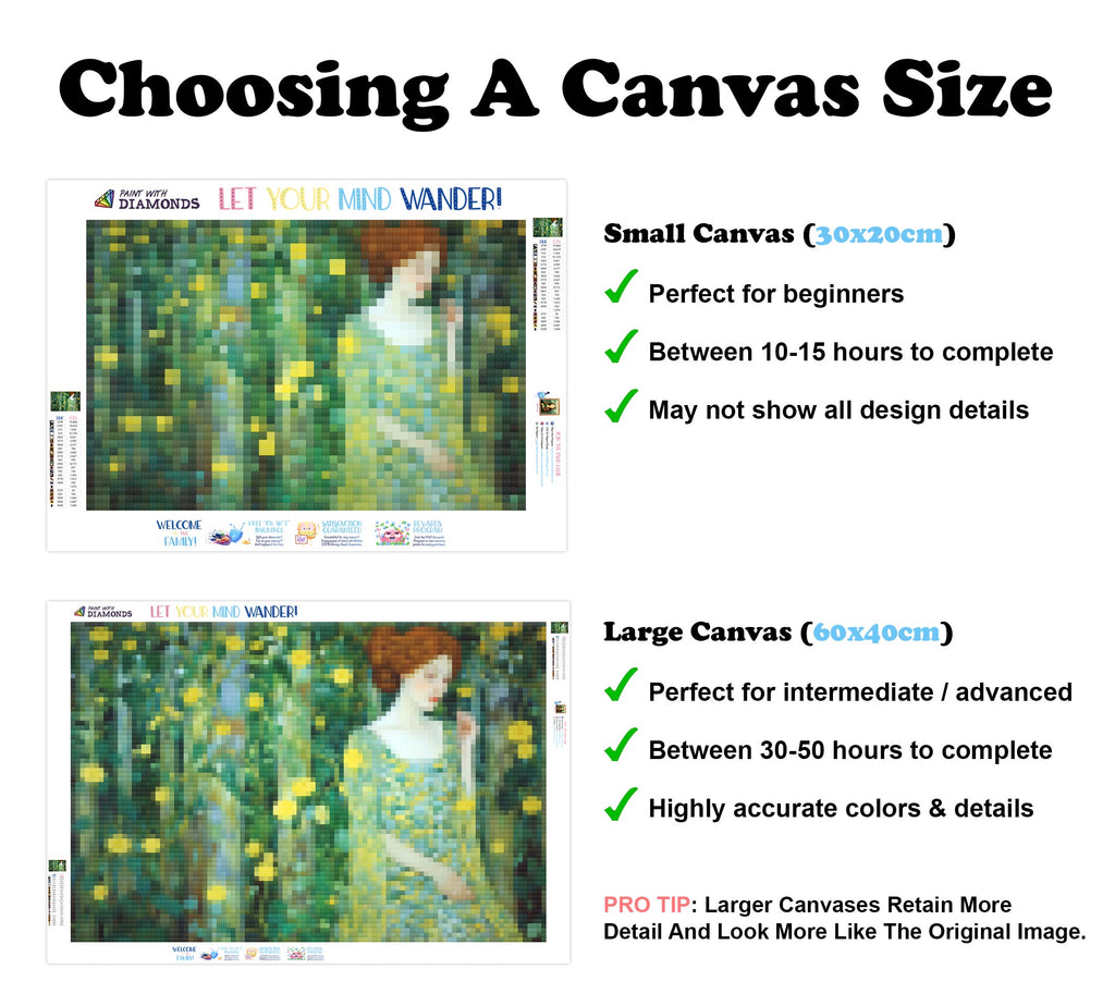 Premium Quality Diamond Painting Kit: Includes a velvety-soft adhesive canvas, eco-friendly shimmering resin diamonds, and a premium toolkit - everything you ned to get started on your next masterpiece.