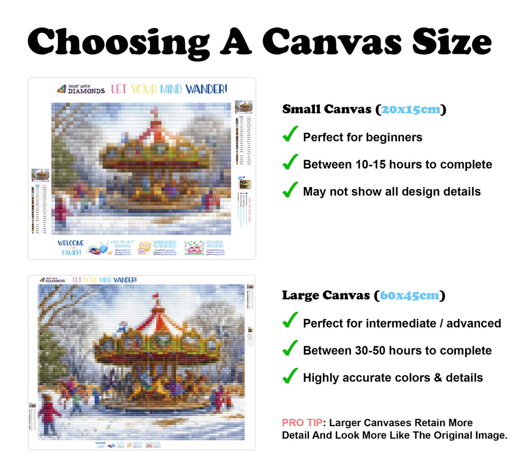Escape into a world of vibrant colors and creative tranquility with the ‘Whimsical Winter Carousel’ Diamond Painting Kit. This exclusive full-drill design by artist Caleb Smith is available only at Paint With Diamonds. Let your mind unwind as you piece together shimmering diamonds to create a beautiful masterpiece.