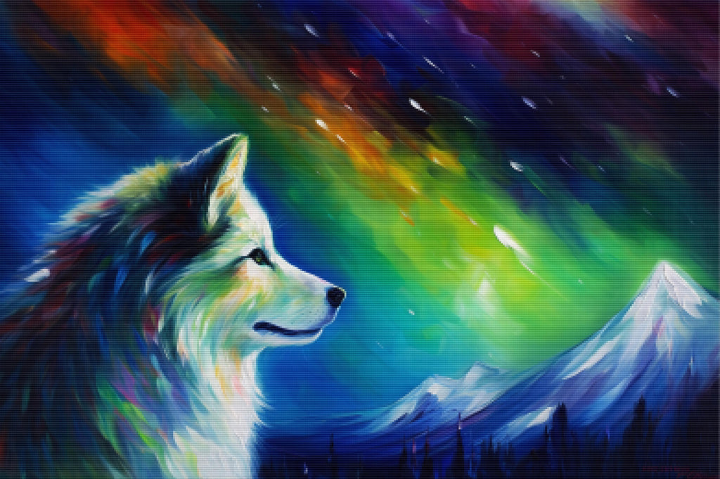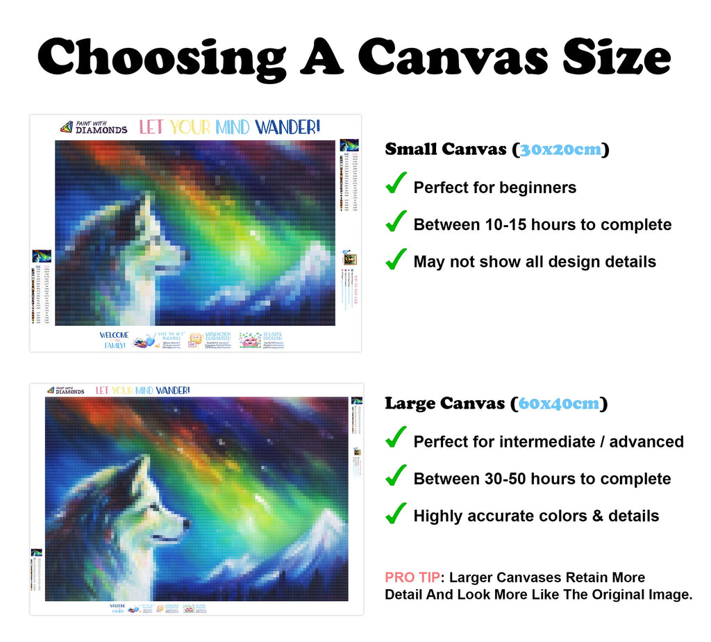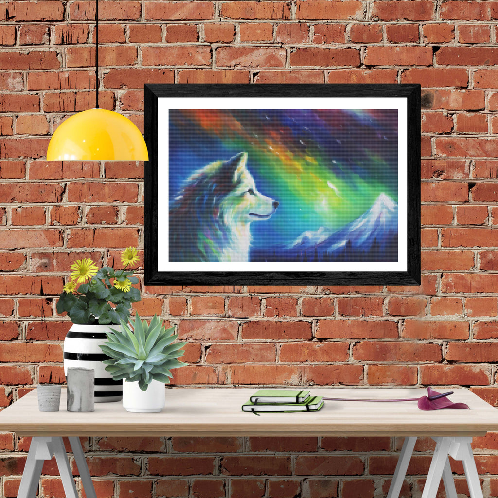 Escape into a world of vibrant colors and creative tranquility with the ‘Wolf Gazing At Northern Lights’ Diamond Painting Kit. This exclusive full-drill design by artist Caleb Smith is available only at Paint With Diamonds. Let your mind unwind as you piece together shimmering diamonds to create a beautiful masterpiece.
